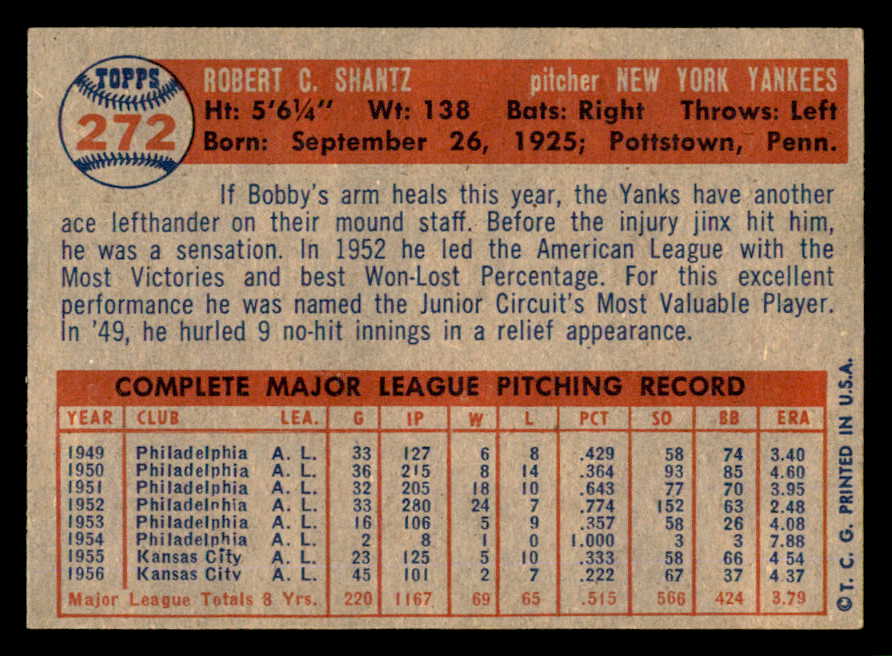 1957 Topps Baseball #272 Bobby Shantz Yankees EX-MT 540018