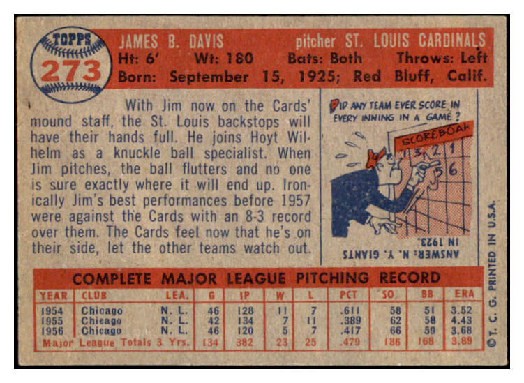 1957 Topps Baseball #273 Jim Davis Cardinals EX-MT 525294