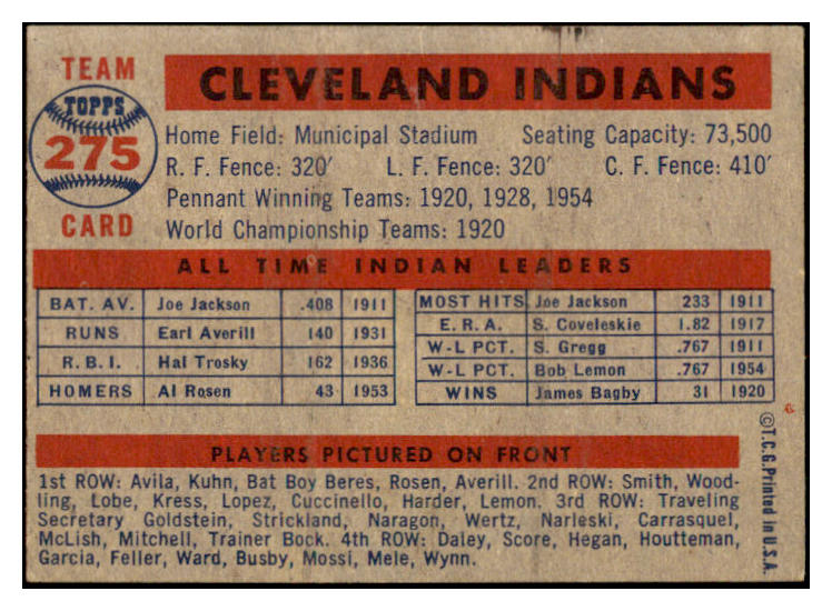 1957 Topps Baseball #275 Cleveland Indians Team EX-MT 530952