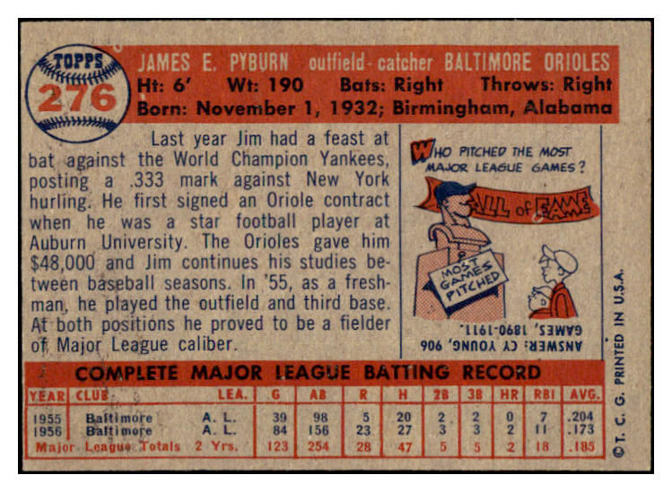 1957 Topps Baseball #276 Jim Pyburn Orioles EX-MT 530378