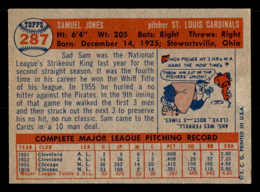 1957 Topps Baseball #287 Sam Jones Cardinals VG-EX/EX 539498