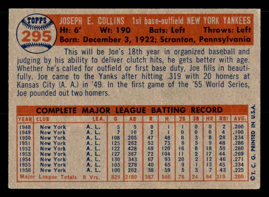 1957 Topps Baseball #295 Joe Collins Yankees NR-MT 539507