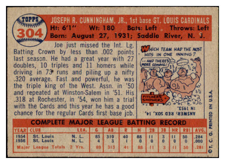 1957 Topps Baseball #304 Joe Cunningham Cardinals EX-MT 530431