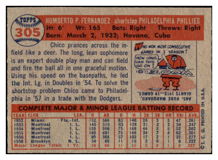 1957 Topps Baseball #305 Chico Fernandez Phillies EX-MT 525299
