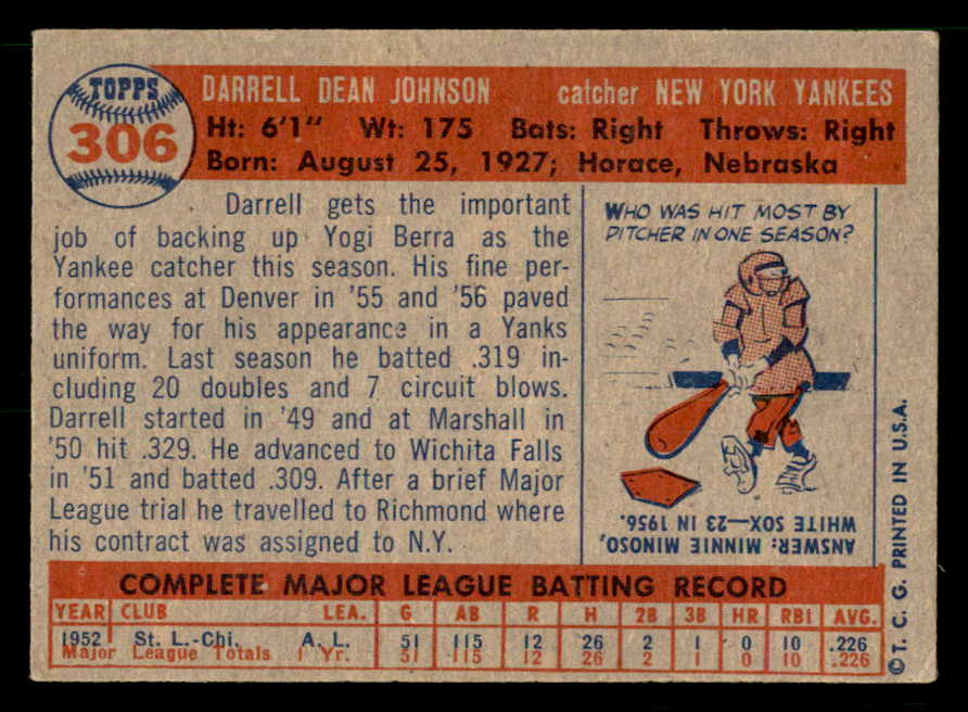 1957 Topps Baseball #306 Darrell Johnson Yankees EX-MT 539488