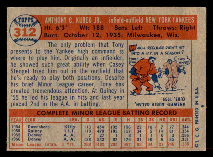 1957 Topps Baseball #312 Tony Kubek Yankees VG-EX 546703