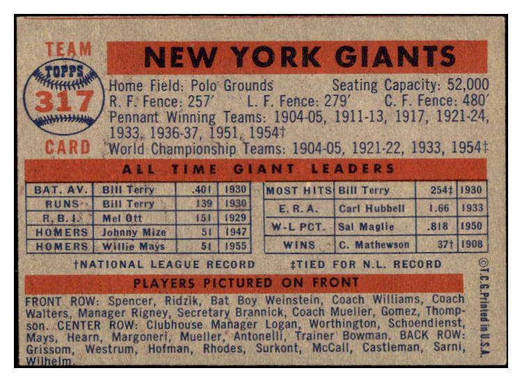 1957 Topps Baseball #317 New York Giants Team EX+/EX-MT 527468