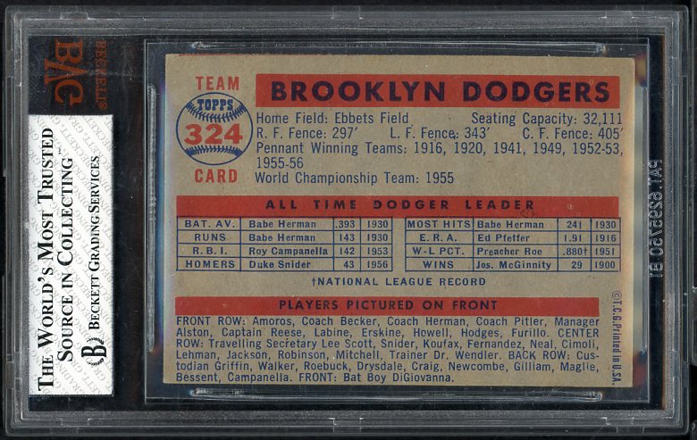 1957 Topps Baseball #324 Brooklyn Dodgers Team BVG 5 EX 538287