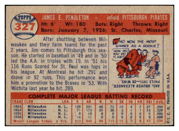 1957 Topps Baseball #327 Jim Pendleton Pirates EX 527645