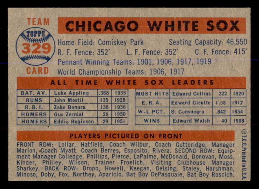 1957 Topps Baseball #329 Chicago White Sox Team VG 547976