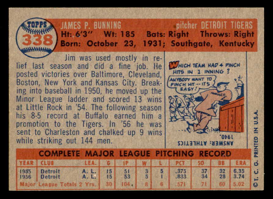 1957 Topps Baseball #338 Jim Bunning Tigers EX+/EX-MT 547212