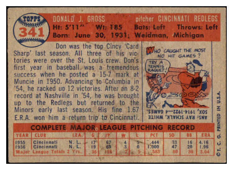 1957 Topps Baseball #341 Don Gross Reds EX-MT 530394