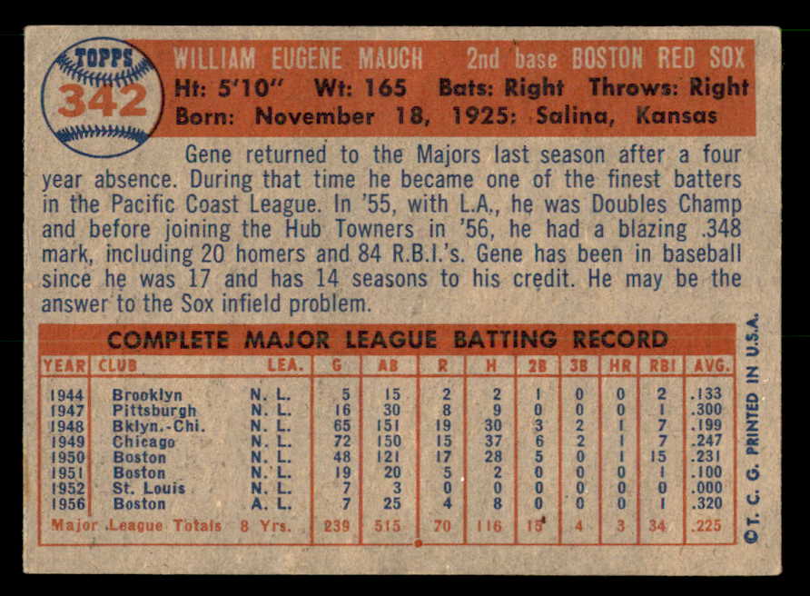 1957 Topps Baseball #342 Gene Mauch Red Sox EX+ 539491