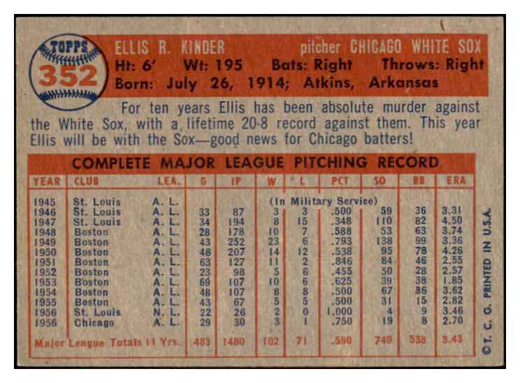 1957 Topps Baseball #352 Ellis Kinder White Sox EX-MT 533815