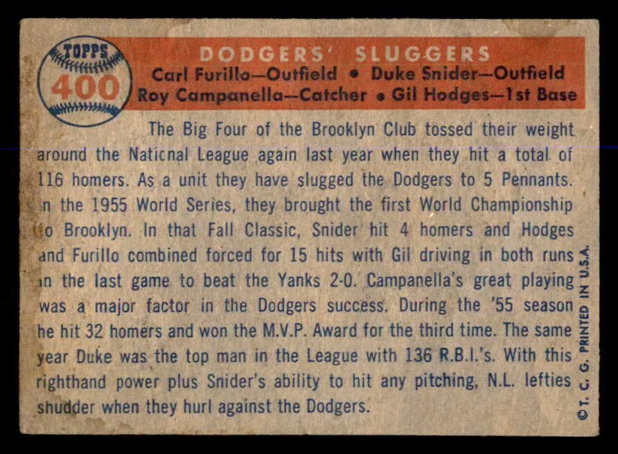 1957 Topps Baseball #400 Roy Campanella Duke Snider Gil Hodges FR-GD 547897