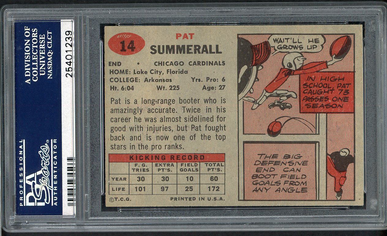 1957 Topps Football #014 Pat Summerall Cardinals PSA 6 EX-MT 547546