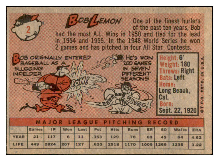 1958 Topps Baseball #002 Bob Lemon Indians VG-EX 532494