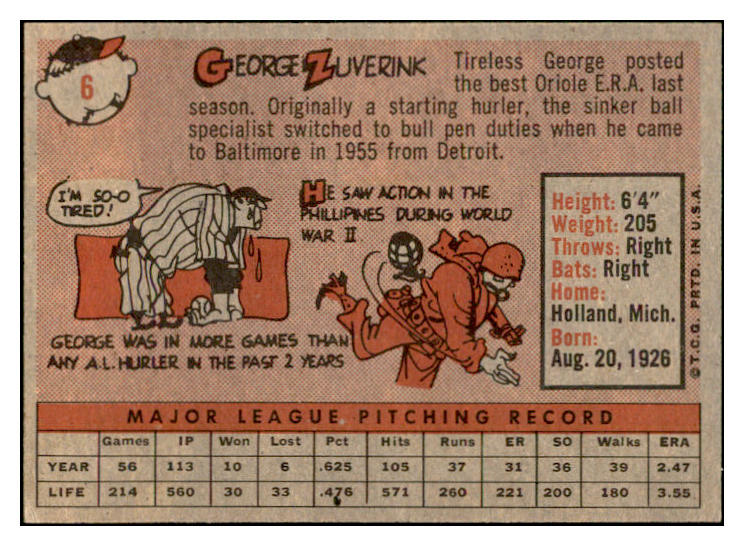 1958 Topps Baseball #006 George Zuverink Orioles EX-MT 535539