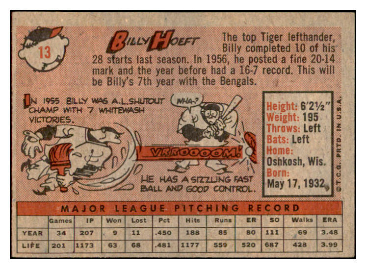 1958 Topps Baseball #013 Billy Hoeft Tigers EX-MT 535544
