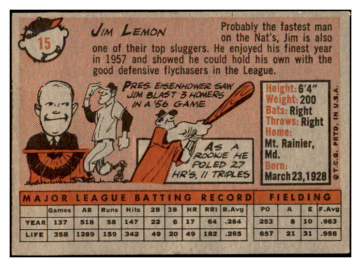 1958 Topps Baseball #015 Jim Lemon Senators EX-MT 535546