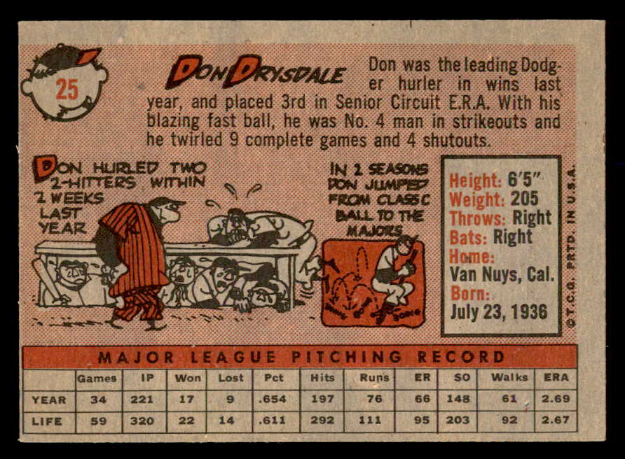 1958 Topps Baseball #025 Don Drysdale Dodgers VG-EX 546177