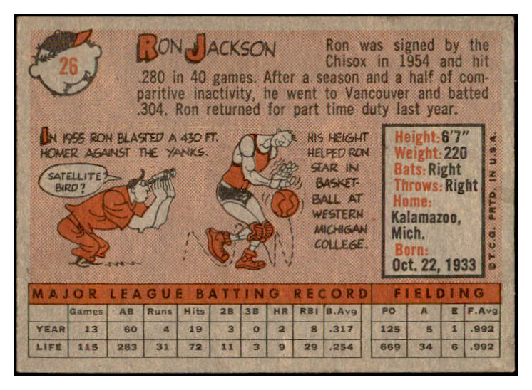 1958 Topps Baseball #026 Ron Jackson White Sox EX-MT 535554