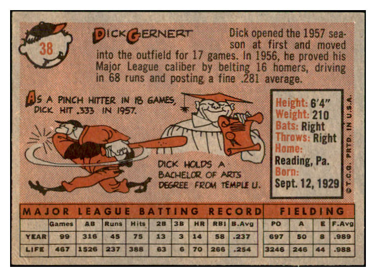 1958 Topps Baseball #038 Dick Gernert Red Sox EX-MT 535571