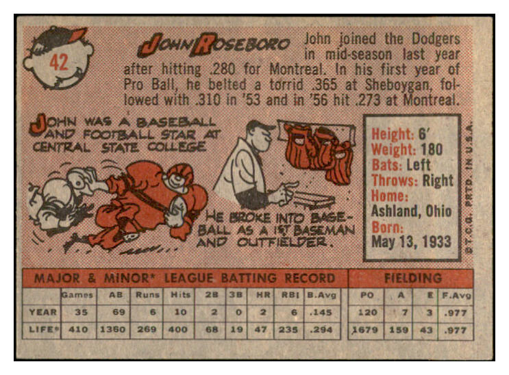1958 Topps Baseball #042 John Roseboro Dodgers EX+/EX-MT 532502