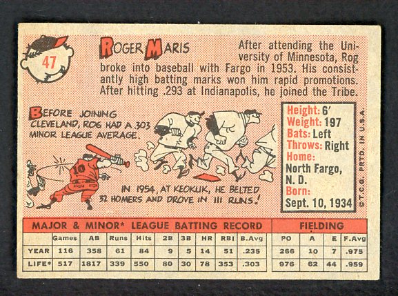 1958 Topps Baseball #047 Roger Maris Indians EX 538537
