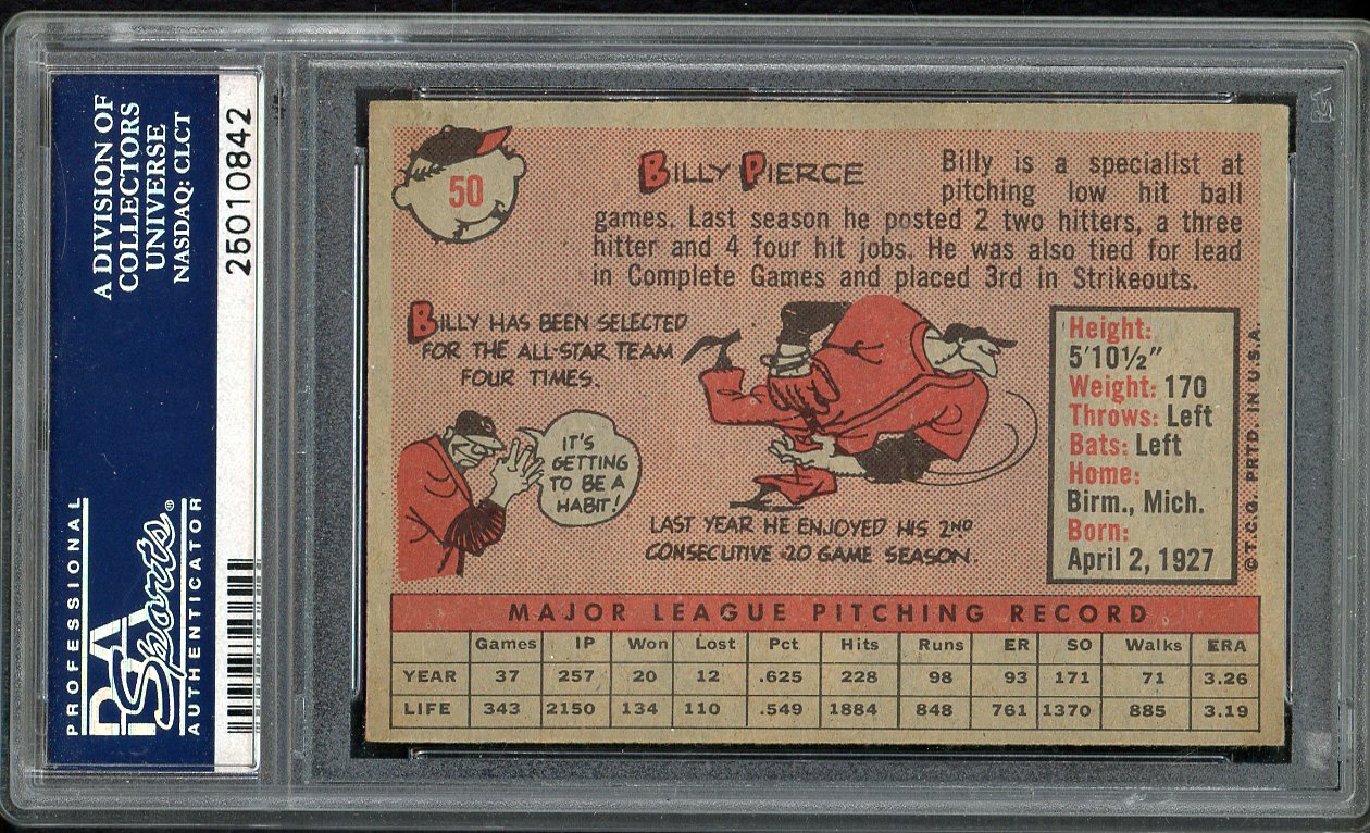 1958 Topps Baseball #050 Billy Pierce White Sox PSA 5 EX Yellow Letter 546587