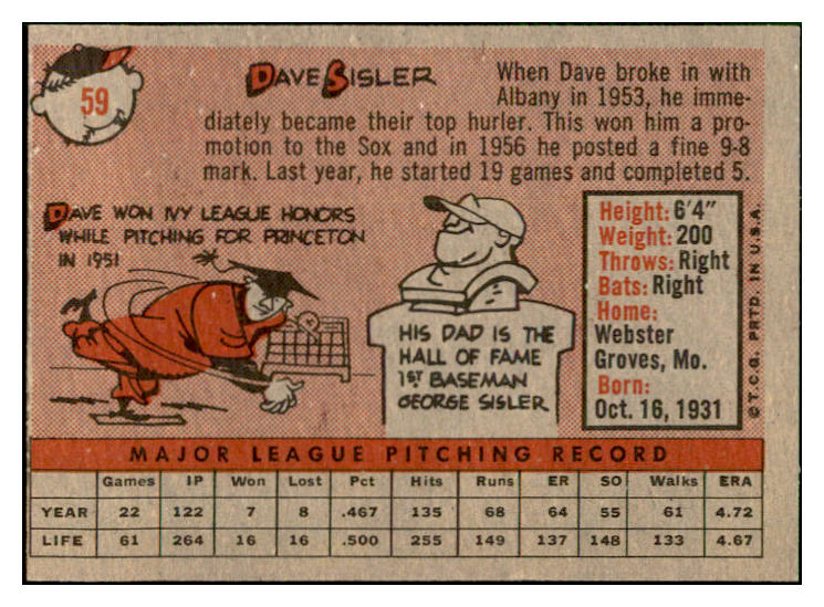 1958 Topps Baseball #059 Dave Sisler Red Sox EX-MT 535595