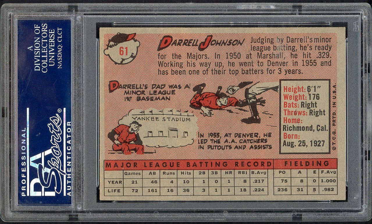 1958 Topps Baseball #061 Darrell Johnson Yankees PSA 8 NM/MT 547415