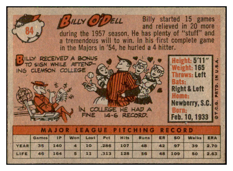 1958 Topps Baseball #084 Billy O'Dell Orioles EX-MT 535625