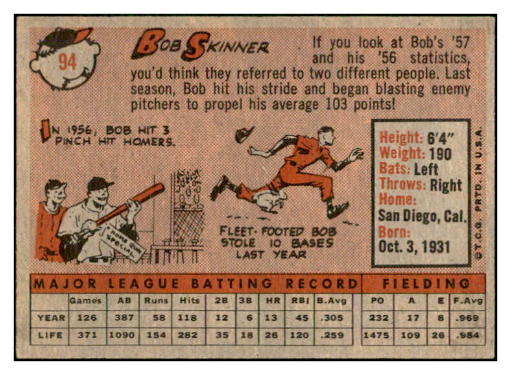 1958 Topps Baseball #094 Bob Skinner Pirates EX-MT 535634