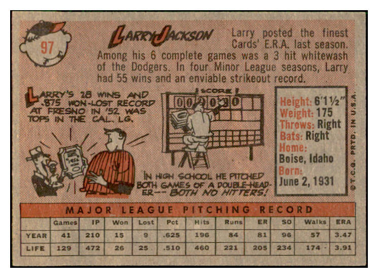 1958 Topps Baseball #097 Larry Jackson Cardinals EX-MT 535636