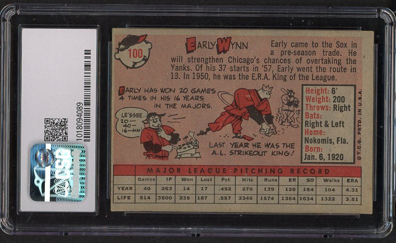 1958 Topps Baseball #100 Early Wynn White Sox CSG 5 EX 534040