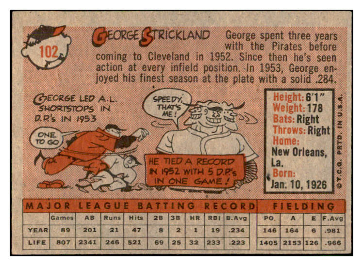 1958 Topps Baseball #102 George Strickland Indians EX-MT 535640