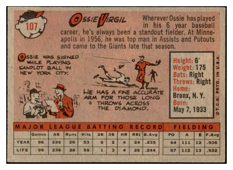 1958 Topps Baseball #107 Ozzie Virgil Giants EX-MT 535648