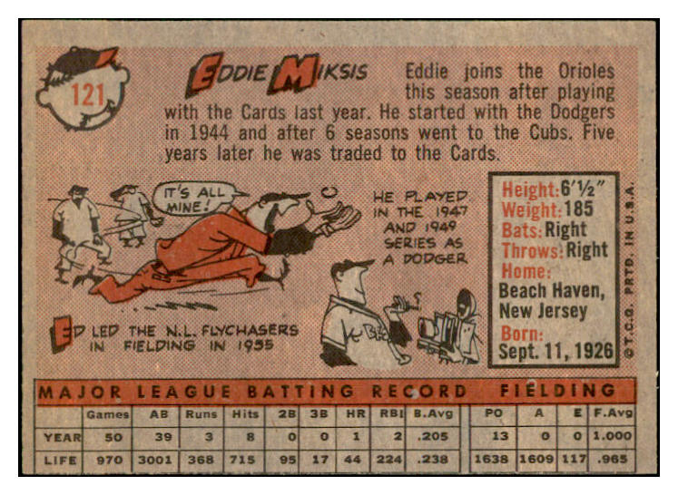 1958 Topps Baseball #121 Eddie Miksis Orioles EX-MT 535665