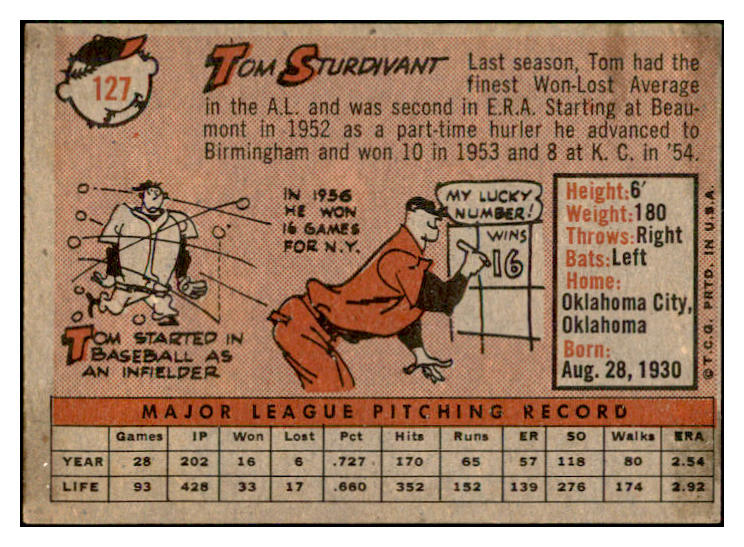 1958 Topps Baseball #127 Tom Sturdivant Yankees EX-MT 535673