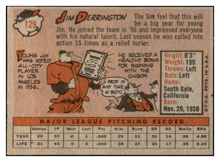 1958 Topps Baseball #129 Jim Derrington White Sox EX-MT 535675