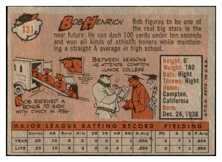 1958 Topps Baseball #131 Bob Henrich Reds EX-MT 535676