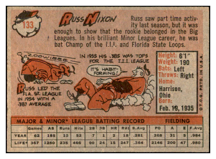 1958 Topps Baseball #133 Russ Nixon Indians EX-MT 535678