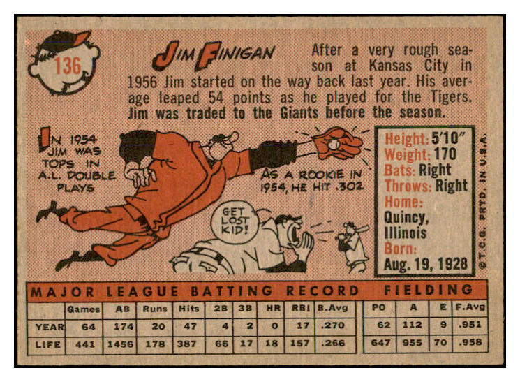 1958 Topps Baseball #136 Jim Finigan Giants EX-MT 535683