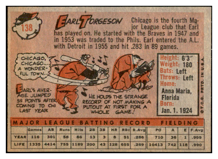 1958 Topps Baseball #138 Earl Torgeson White Sox EX-MT 535685