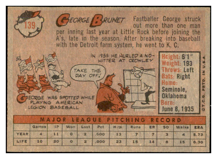 1958 Topps Baseball #139 George Brunet A's EX-MT 535687