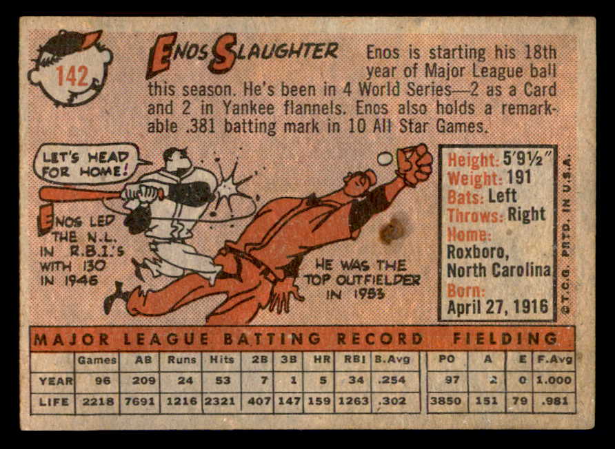 1958 Topps Baseball #142 Enos Slaughter Yankees EX 542355