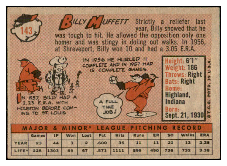 1958 Topps Baseball #143 Billy Muffett Cardinals EX-MT 535691