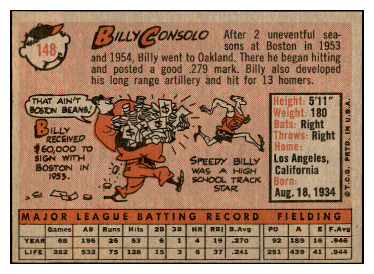 1958 Topps Baseball #148 Billy Consolo Red Sox EX-MT 535696