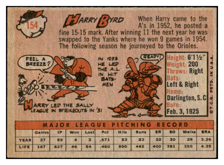 1958 Topps Baseball #154 Harry Byrd Tigers EX-MT 535705
